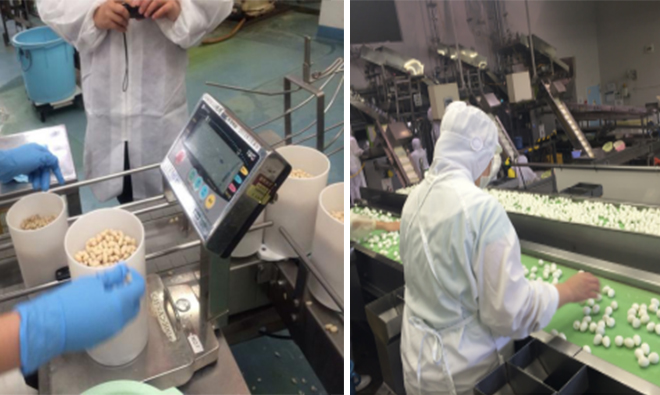 具體工作描述 | 加工各種蔬菜罐頭,有魚糕罐頭、鵪鶉蛋、海帶、板栗、桃子、銀杏等等。忙季還會制造日本傳統的「おでん」。 實習生在各個工序上都有,比如挑選、包裝、稱重、混料等。 | 在日年限 | 3年 |